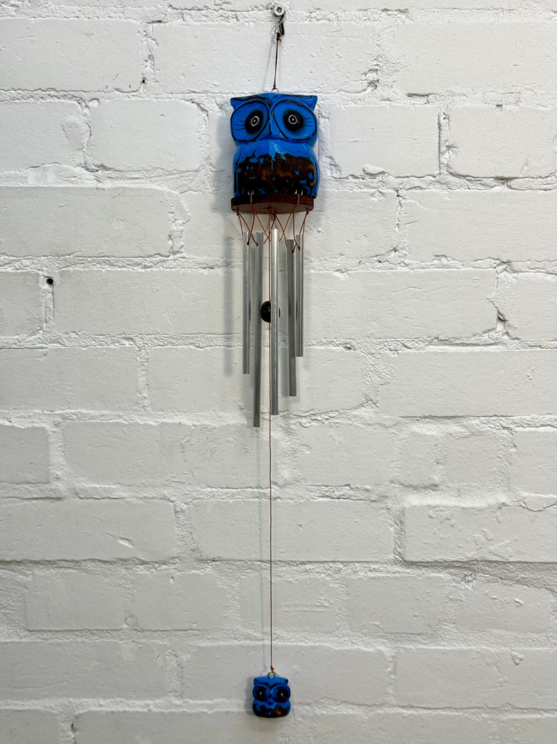 Blue Wooden Owl Windchime