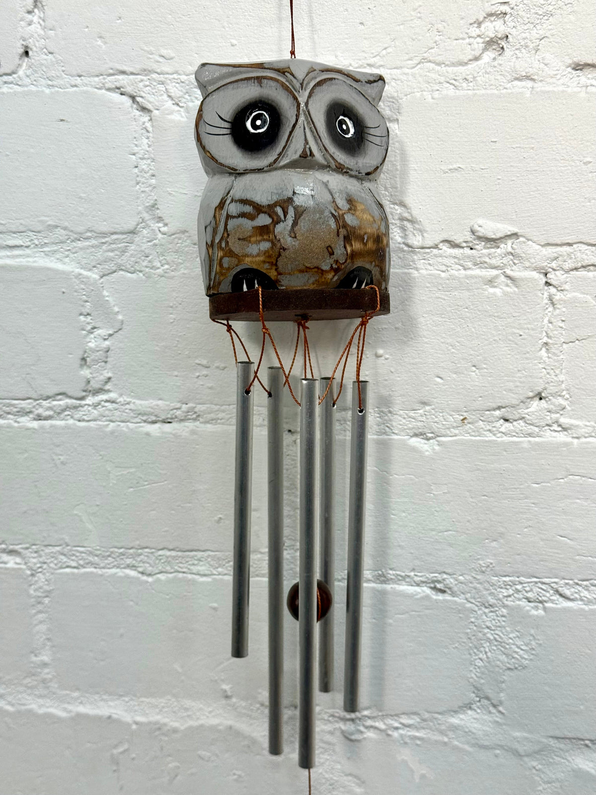 Grey Wooden Owl Windchime