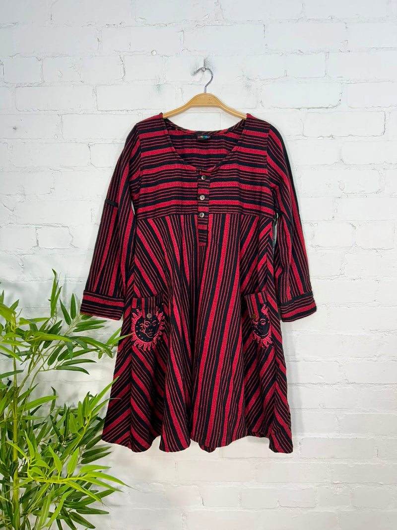 Sun and Moon Print Striped Long Sleeve Dress