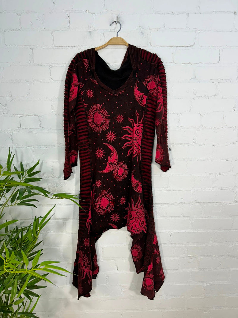 Celestial Print Hooded Midi Dress